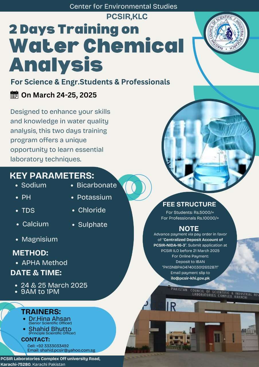 2 Days Training on Water Chemical Analysis to be held on 24-25 March 2025